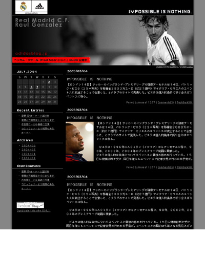 7月24日に『マドリッド ワールドツアー2005 イン ジャパン』のため来日するレアル・マドリッドC.F.のデビッド・ベッカムとラウール・ゴンザレス両選手が、日本のみなさんに直接メッセージを伝える場として今回ブログを開設しました。