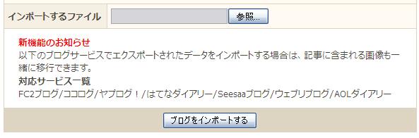 管理ページの「ブログのインポート」で、先ほどダウンロードしたMovable Typeのファイルを選択します。