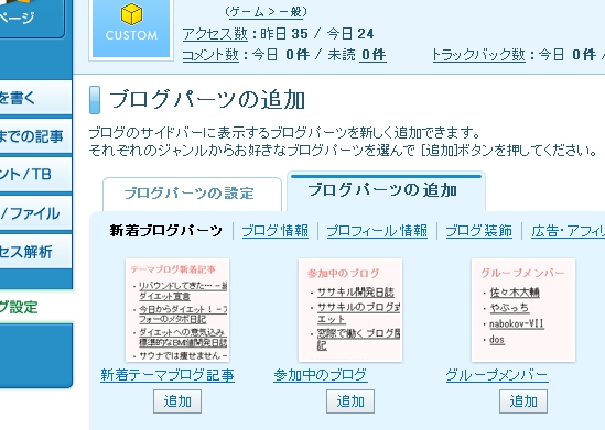 [ブログ設定] > [ブログパーツ 新規追加] > [グループメンバー]