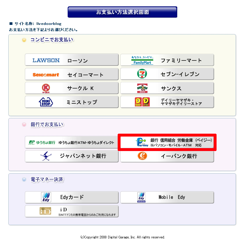 次に支払い方法選択画面が表示れますので、ここで Pay-easy(ペイジー) を選択してください。