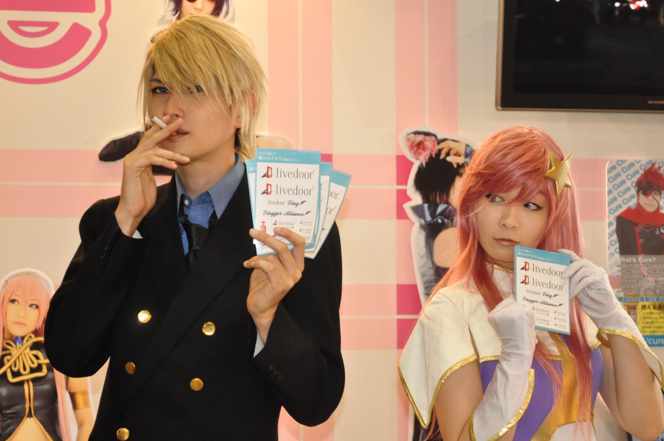 ▼今日も朝からコスプレイヤーさんにお手伝いいただいています。