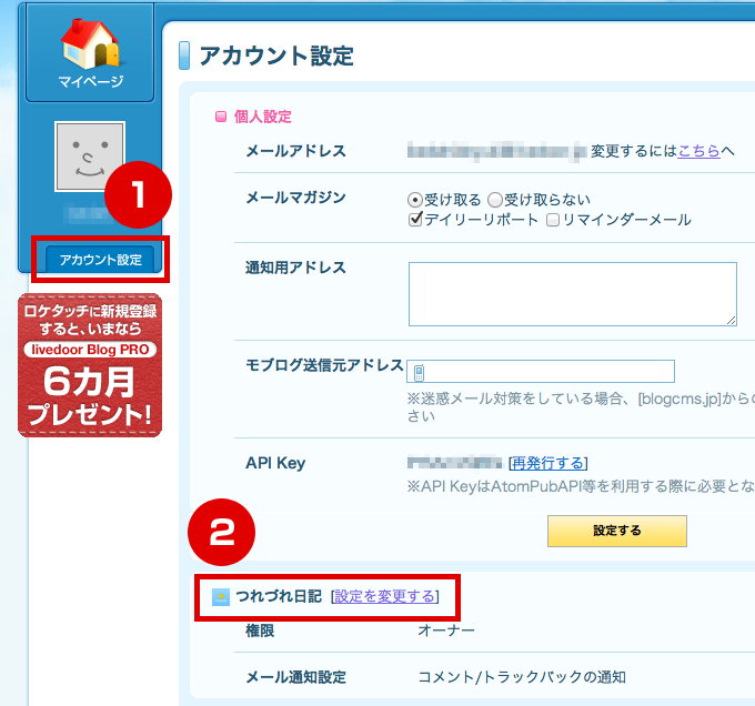 - ブログ管理ページにログインして、マイページの[ブログ設定] > [メール投稿設定]へ移動してください