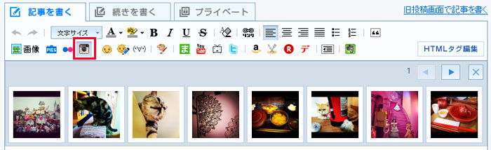 アイコンをクリックすると登録していた画像が表示されるので、選択すると記事に挿入できます。
