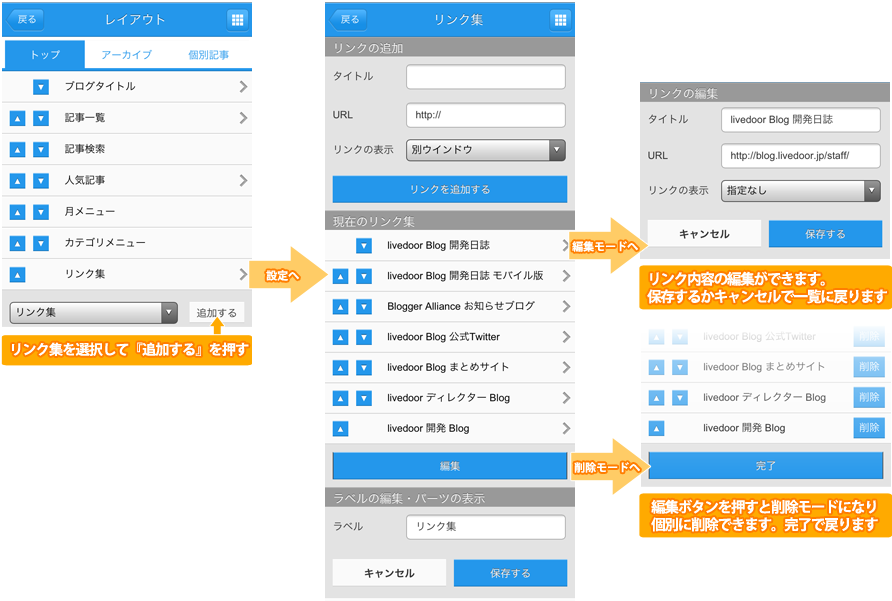 追加した後のリンクは編集ボタンを押すことで削除が可能です。