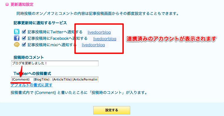 - 各サービスへの投稿の際に付けるコメントの設定