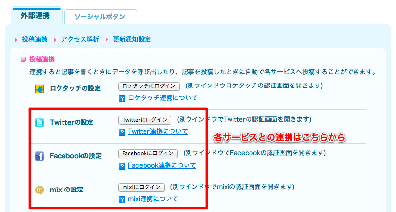 ソーシャルサービスとの連携でより便利にブログをお使いいただければと思います。