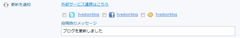 ブログ設定>外部サービスのページに「更新通知」の項目を設けました。