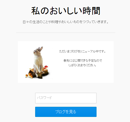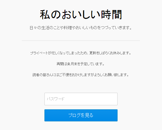 これまで記事の追記のみにでしたが、ブログ全体にもパスワードを設定して、特定のユーザのみにブログが公開できるようになりました。