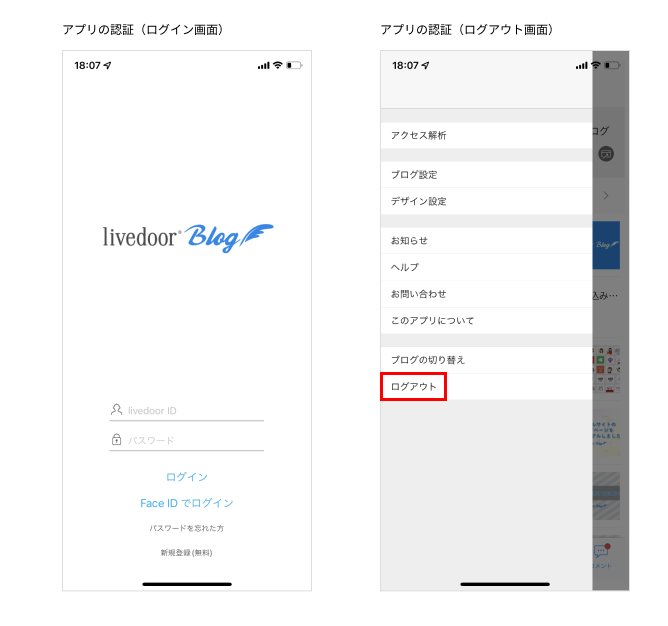 投稿アプリからログアウトした状態で端末を共有した場合であっても、ロックがかかっていない状態の端末を解析された場合や、端末を共有した相手が端末のパスコードを知っていたり生体認証を許可されていたりする場合には、livedoor IDのパスワードも含めた認証情報が読み取られる可能性や、生体認証やパスコードを用いて以前のアカウントでログインされる可能性がございます。