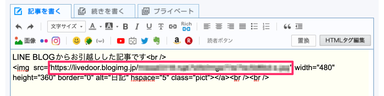 ・記事内の画像のURLがLINE BLOGのURL( https://line.blogimg.jp/*** など)のままである場合、画像が正常に移行できておりません。 画像のURLが、ライブドアブログのURL( https://livedoor.blogimg.jp/*** )になっているかをお確かめください。